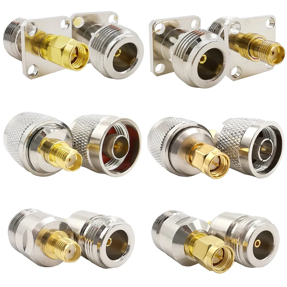 1Pcs N Male Female to SMA Male Female RF Coaxial Adapter SMA to N Type Plug Jack 4 Hole Flange Panel Mount Converter Connector