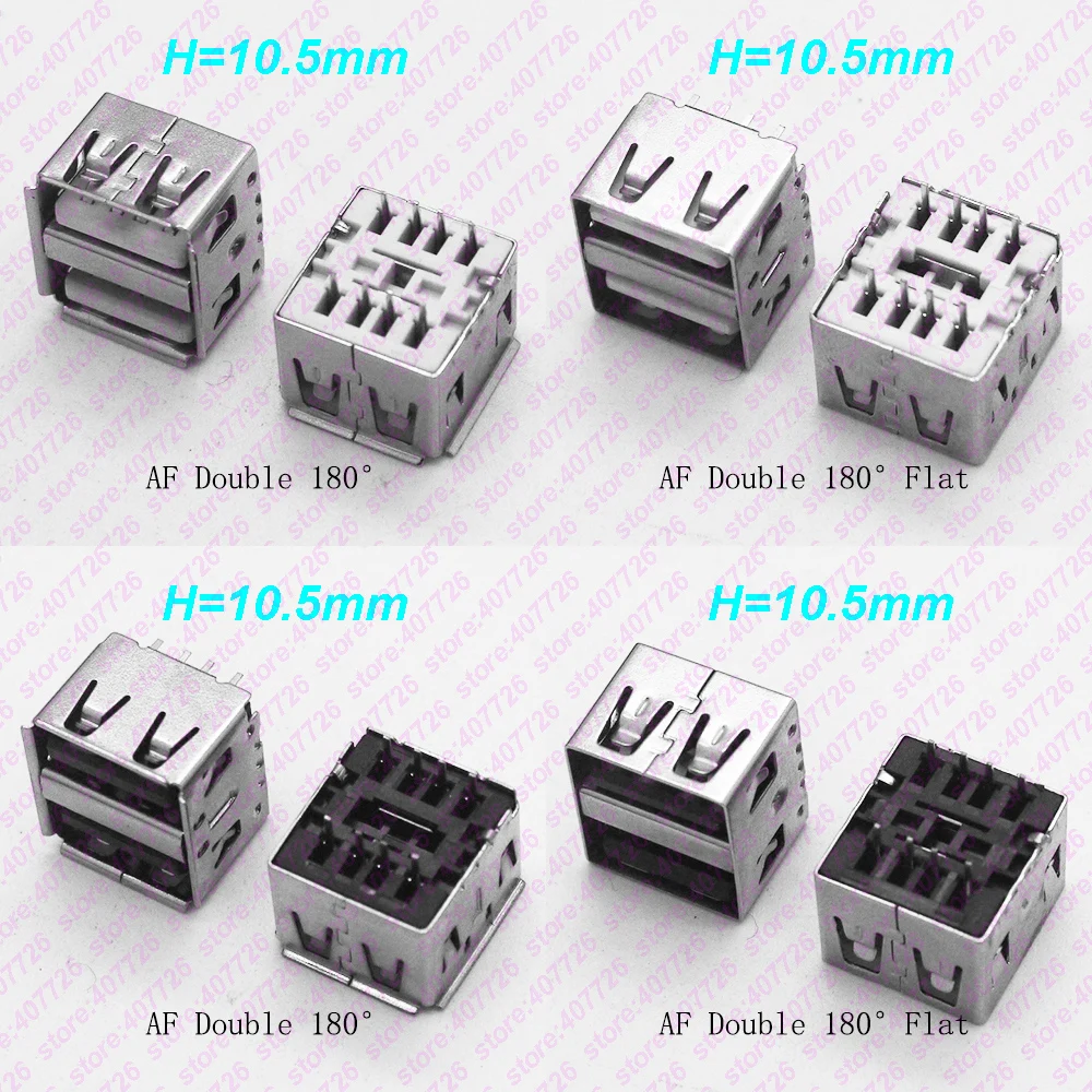 5PCS Dual USB 2.0 Jack Female 180 Degree USB Connector Black/White Body 8PIN DIP Charging Socket H=10.5MM Curved/Flat Mouth