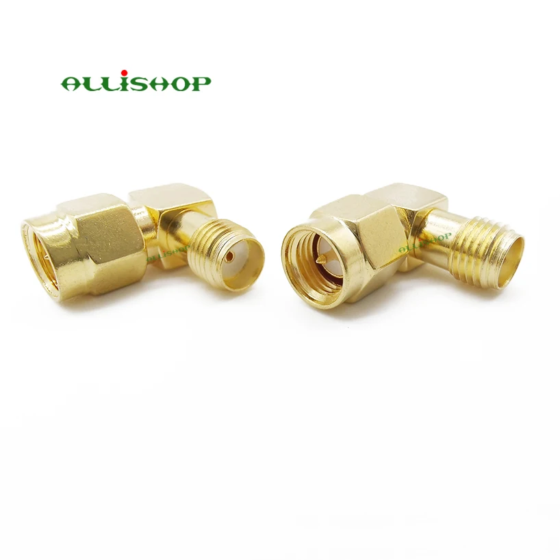 2Pcs SMA male plug to SMA female jack 90 Degree right angle in series RF coaxial coax Assembly adapter connector