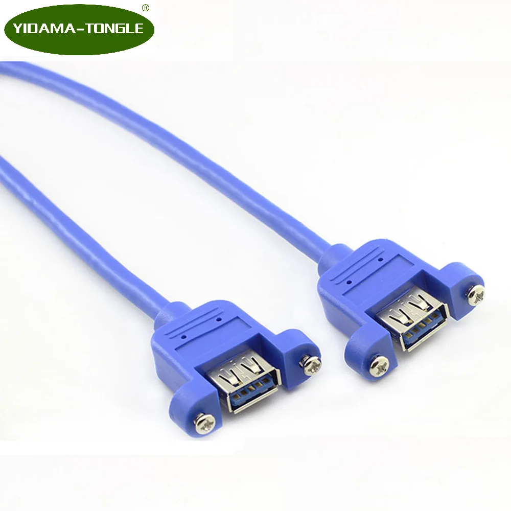 USB 3.0 Female to Female Panel Mount Cable USB 3.0 Extension Data Cable Lock Panel with M3 nuts Screws