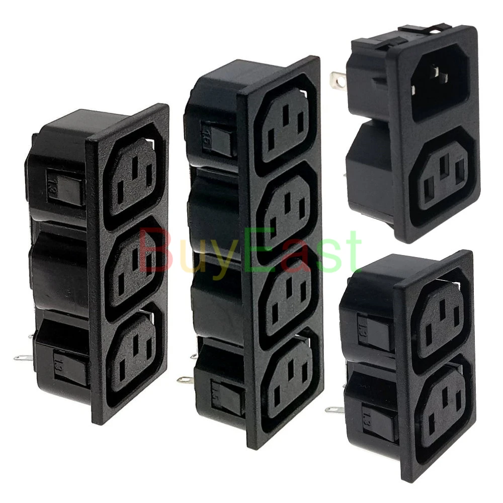 2, 3, 4 Way IEC C13 C14 Male Female Panel Mount Inlet Power Socket AC250V 10A