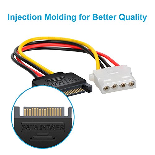 HDD Big 4 Pin Female to 15 Pin Male SATA Power Cable for Hard Drive Disk (Black)