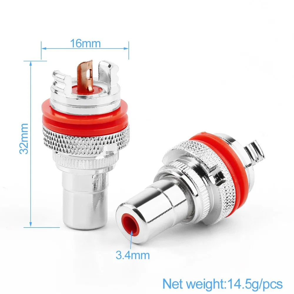 RCA Female Socket Chassis HiFi For CMC Connector Rhodium Plated Copper Jack 32mm Copper Plug Amp White Red Audio Jacks Adapter