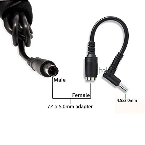 Femmina 7,4 x 5,0 mm per 4,5 x 3,0 mm maschio caricabatteria adattatore cavo di alimentazione convertitore per HP Stream Spectre Pavilion Envy EliteBook Split Chromebook EliteBook Folio -2 PACK