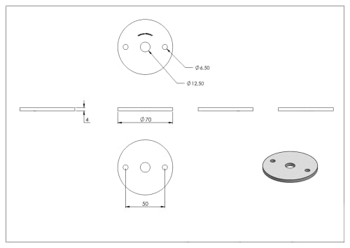 Fenau: Piastra di ancoraggio: Ø 70x4 mm: Acciaio (grezzo) per saldatura in/con fori per fissaggio a parete o a pavimento