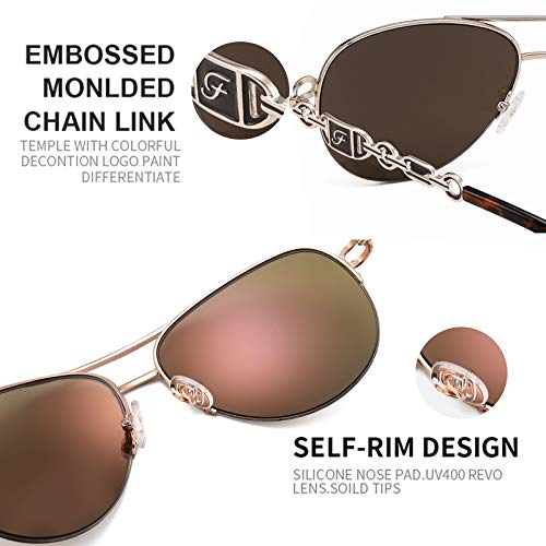 FENCHI Occhiali da Sole Classici per Donna Lenti a Specchio Bracci a Catena Montatura in Metallo Occhiali da sole Protezione UV 400 60mm C2