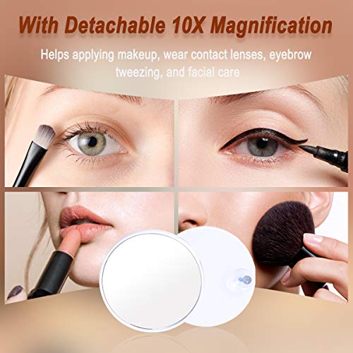 【Rotazione di 360° e ingrandimento 10X staccabile】. Lo specchio per il trucco con luce e può essere facilmente ruotato di 360 gradi e fissato in qualsiasi posizione in base alle proprie esigenze. La lente d'ingrandimento 10x ti aiuta ad applicare il trucco dettagliato. Perfetto per un trucco preciso.