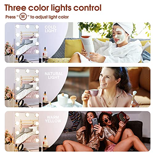 【3 modalità di luce e luminosità regolabile】Questo specchio da trucco dispone di 9 lampade con interruttore dimmer regolabile e la luce può essere impostata su tonalità bianco caldo, naturale e freddo.