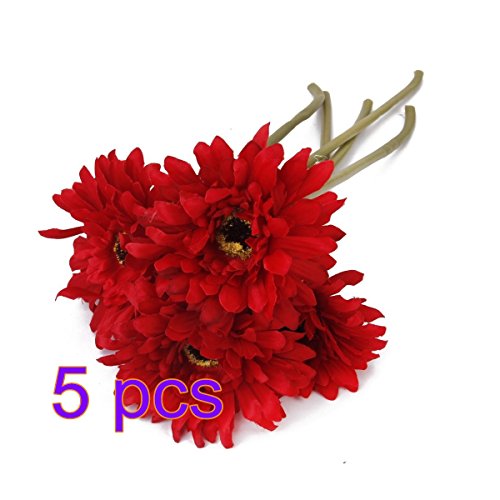 Fendii artificiale gerbera teste di fiore matrimonio fai da te Decorazione domestica, confezione da 5, red 5pcs, small