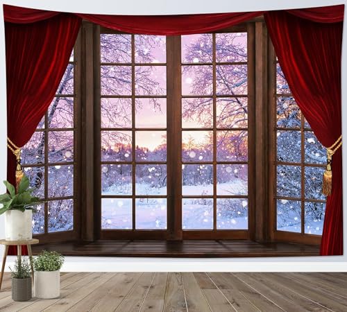 FENDROM Arazzo invernale da appendere alla parete, con scena innevata da sogno, per esterni, finestra, Natale, foresta innevata, coperta da appendere alla parete, per camera da letto, soggiorno,