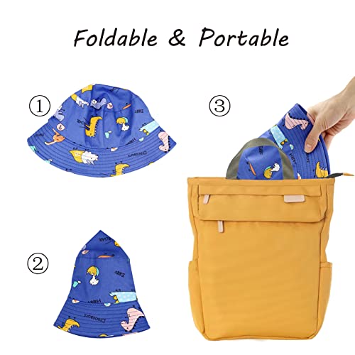 Fenfang Cappello da Sole Bambino Bambina a Tesa Larga, Berretto Pescatore Neonato Estivo, Cotone Bucket Hat, Fisherman cap da Cartone Dinosauro Spiaggia 1 2 3 4-8 Anni (4-8 Anni, Blu)