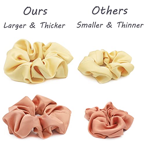 【Materiale Premium】Questi scrunchies sono realizzati in raso lucido di alta qualità e di consistenza setosa. Sono lisci, morbidi e comodi da indossare, non si aggrovigliano, si impigliano o strappano i capelli. Gli elastici all'interno degli scrunchies sono molto allungabile. Tengono bene su capelli spessi o sottili, lisci o ricci.