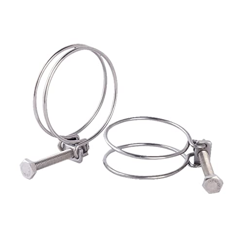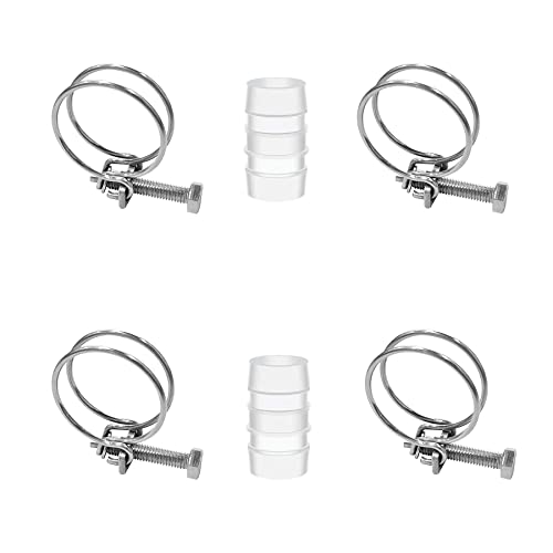 FENGCHUANG Fascetta Stringitubo a Doppia Linea in 4 Pcs Fascetta Stringitubo Regolabile in Acciaio Inossidabile 304 con Connettore per Tubo Flessibile in Linea in 2 Pcs (25 mm/1,3 Pollici)