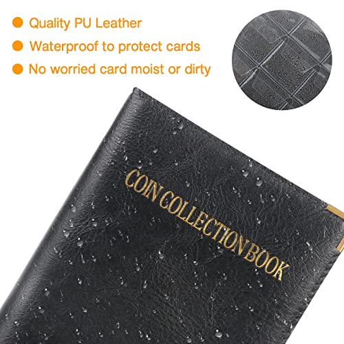 [Rivestimento in Pelle + Materiale in PVC]: Album Della Collezione di Monete è realizzato in rivestimento in pelle, la foglia sciolta è realizzata in materiale PVC trasparente, che è trasparente e resistente, ha un lembo, non facile da staccare.
