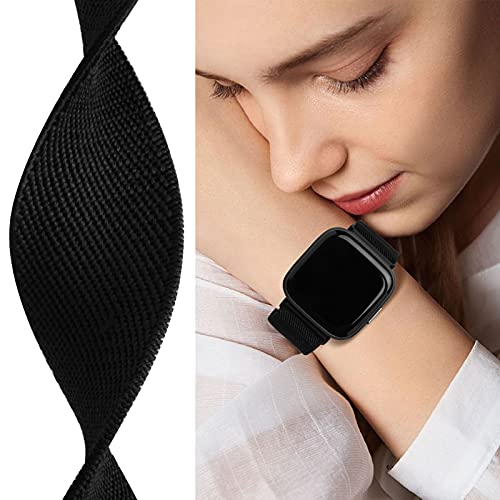 Fengyiyuda Cinturino in nylon compatibile con Fitbit Versa 2/Versa/Versa Lite/Versa SE,per donne uomini, elastico sportivo fibbia Strap,Pure Black/Pure Army Green/Pure Navy Blue/Dark Grey