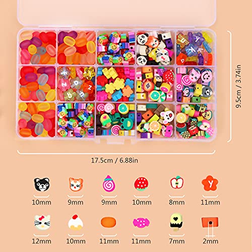 Fengzio Perline per Braccialetti Kit per Braccialetti Fai da te 375 pezzi Perline Morbide in Ceramica e Acrilico Bambini per Braccialetti Frutta Kit Collane faidate Set per Fare Braccialetti