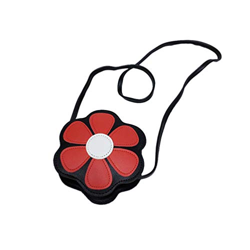 FENICAL borsa a tracolla a forma di fiore in pelle pu creativa con borsa a tracolla con zip borsa a tracolla portamonete per bambine (rosso)