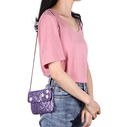Fenical borsa a tracolla borsa con paillettes portamonete mini fiore messenger glitter borsa per cellulare per bambina (viola)