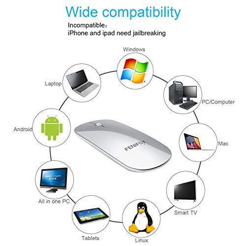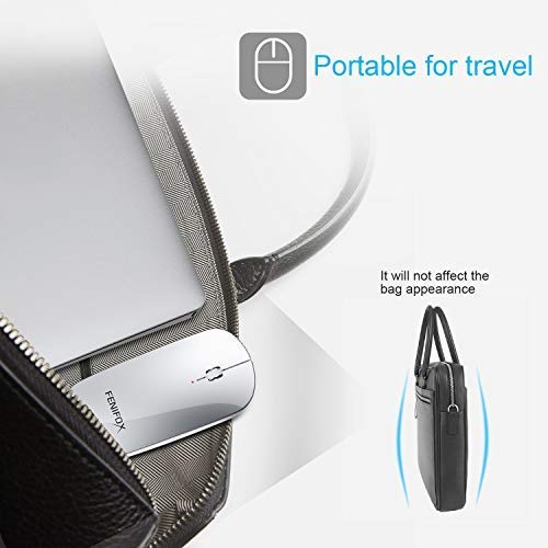 FENIFOX Mouse Wireless, Mini Mouse Bluetooth Ricaricabile, Mice Portatile Silenzioso per Viaggio d'Affari, Ufficio, Casa, Compatibili Mac/Windows/Notebook/Tablet/Cellulare-Argento