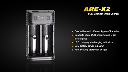 Fenix Are-X2, Caricabatterie Intelligente con Due alloggiament Unisex Adulto, Nero, Taglia Unica