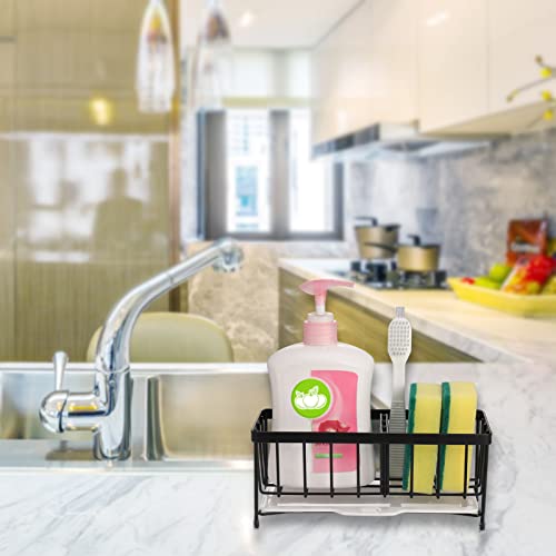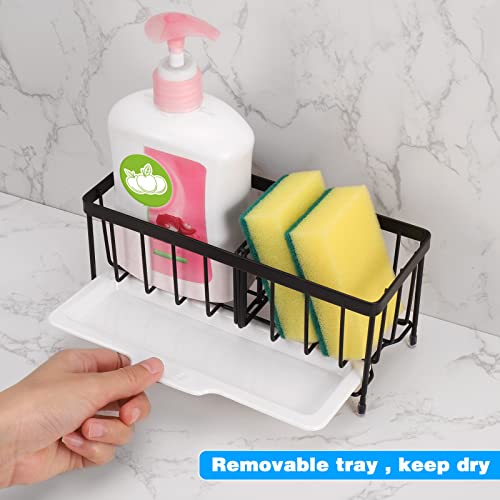 Fentar Organizer Lavello Cucina, Porta Spugne Lavello Cucina in Acciaio Inox 304, Porta Spugne Cucina Nera con Vassoio di Scarico Rimovibile, Multifunzionale per Lavello da Cucina con 1 Spazzola