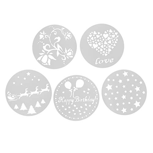 Fenteer 5pcs Stampo Buon Compleanno Torta Spray Torta, Fiore, Stelle, Cuore, Alce, Aria Pall
