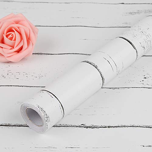 FENTIS Carta da Parati Bianca Carta da Parati Autoadesiva in Legno Carta da Parati a Righe in Legno Carta da Parati a Buccia e Stick Carta da Parati Carta da Parati Rimovibile per Cucina 44,5x1000CM