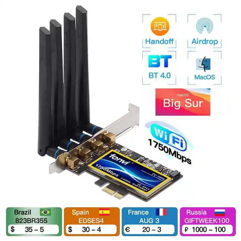 Fenvi 1750Mbps 2.4G/5G Dual Band Wireless WiFi Adapter Bluetooth 4.0 Card 802.11ac Free Driver For Mac OS/Hakintosh Desktop