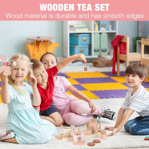 [Regalo per bambini di 3 4 5 6 anni] Set da Tè giocattoli in legno è perfetto per i bambini dai tre anni in su, rendendolo un regalo ideale per i bambini per compleanni, Ringraziam