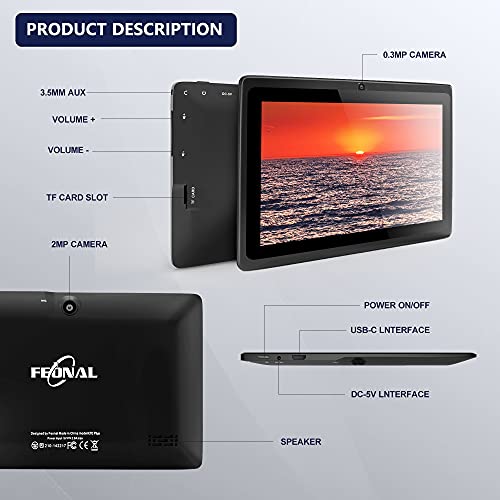 1024*600 IPS HD Display: Il tablet Android da 7" supporta Youtube 1080 FHD IPS (1024*600). Devo dire che FEONAL Tablet Plus supera i suoi pari in termini di prestazioni e configurazione. Si possono vedere molti prodotti simili sul mercato, ma il nostro FEONAL è sicuramente un ottimo prodotto per i soldi. È possibile impostare una modalità di controllo parentale e questo è un tablet meraviglioso per bambini e adulti.