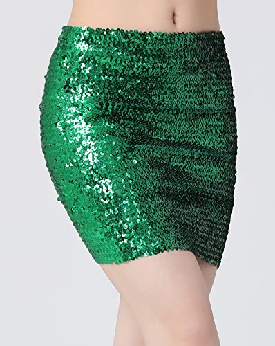 FEOYA Gonna a matita da donna con paillettes con vita elasticizzata gonna longuette a vita alta glitterata gonna aderente vintage gonna corta estiva multicolore, Verde, Taglia unica