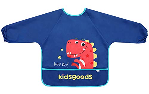 FEOYA Grembiule Bambini Bambino Bavaglino Stampato Maniche Lunghe con Tasca Impermeabile per 6-9 Anni Blu