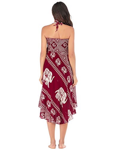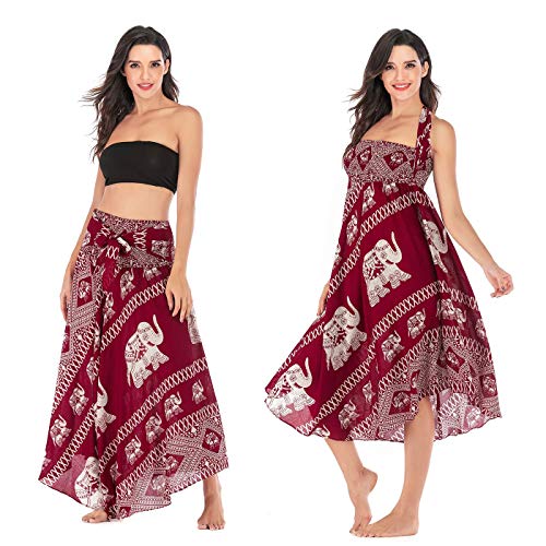 FEOYA 2 in 1 - Vestito da donna, stile etnico, con gonna lunga stampata, stile etnico, 2 in 1 bordeaux Taglia unica