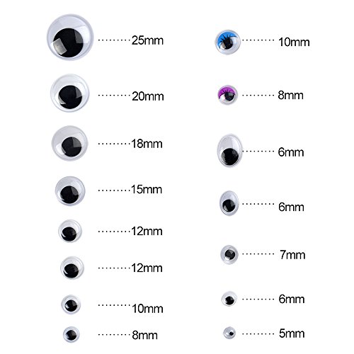 Quantità: circa 1150 pezzi di occhi sinuosi, dimensioni miste e colori misti, scelta di idee per progetti di decorazione e fai-da-te