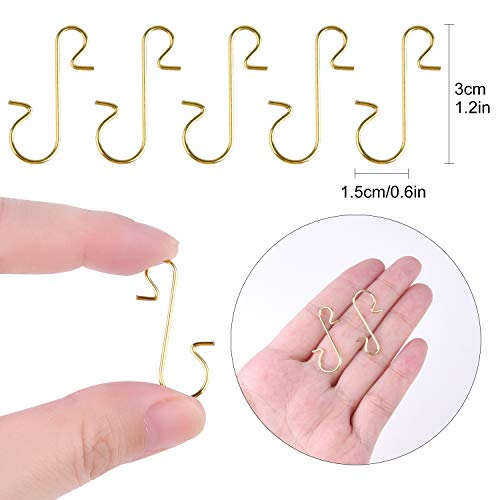 PACCHETTO COMPRESO: 200 ganci per ornamenti natalizi in colore oro, mini ganci natalizi in acciaio inossidabile