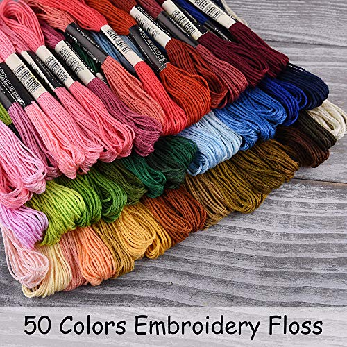 FEPITO 55 Pezzi Filo da Ricamo Color Arcobaleno Set 50 Gomitoli Filo da Ricamo e 5 Pezzi Filo da Bobine Filo per Bracciali Amicizia Filo Interdentale, Fili a Punto Croce, Filo Interdentale