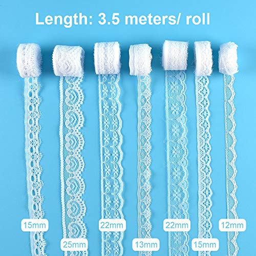 FEPITO 55.5 Yard Pizzo Rotolo Nastro di Pizzo Bianco Nastri di Pizzo Vintage Crema Pattern Assortiti per Cucire Fai da te e Decorazioni per Matrimoni, 15 Rotoli