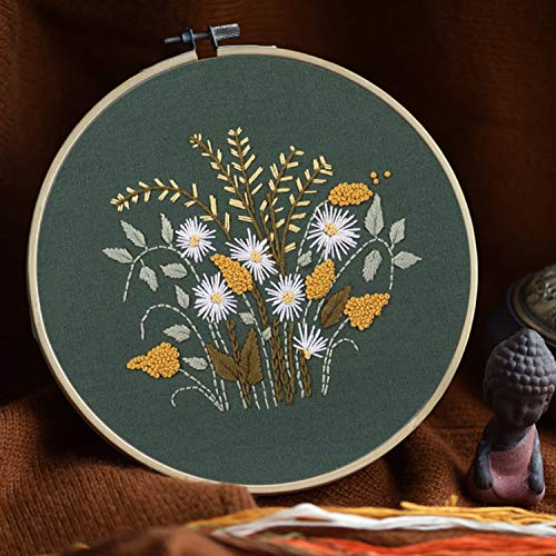 FEPITO 4 Set Ricamo Starter Kit con Motivo e Istruzioni Kit Punto Croce Include Tessuto Ricamo con Motivo Floreale, Cerchi Ricamo, Forbici, Kit Aghi Fili Colorati, Stile Floreale 2