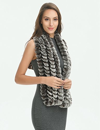 Ferand - Sciarpa Lunga Caldo Leggera in Vera Pelliccia di Coniglio Rex per Inverno - Donna