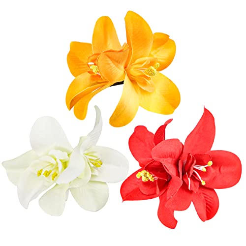 FERCAISH 6 forcine per capelli a forma di fiore bohemien, con fiore tropicale artificiale, accessori per capelli da sposa, 3 colori hawaiani di ibisco e orchidea per donne e ragazze