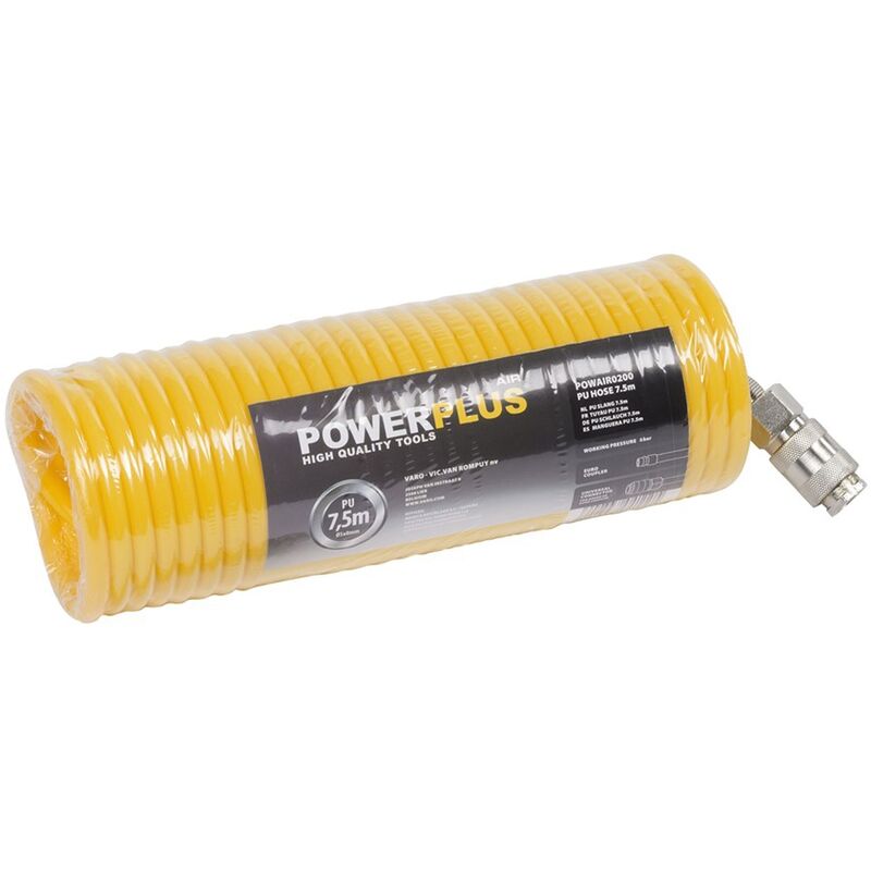 Tubo aspirale compressore powerplus giallo lunghezza 7,5 mt, pressione 12 bar, presa d'aria 1/4 di pollice Tubo aspirale compressore powerplus giallo lunghezza 7,5 mt, pressione 12 bar, presa d'aria 1/4 di pollice