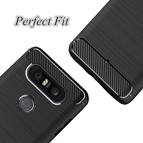 Ferilinso Cover LG Q8, Custodia Case Cover Armatura Ruggente Armatura Hybrid Defender Custodia in Silicone Protettiva Antiurto Custodia in Fibra di Carbonio per LG Q8(Nero)