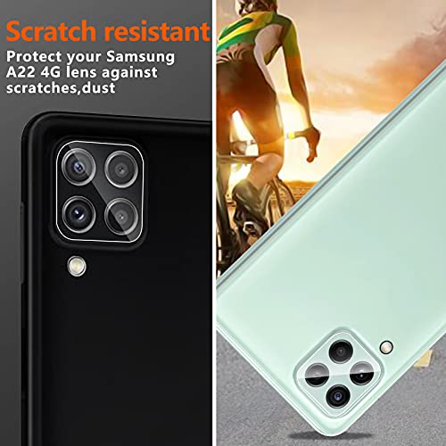 Compatibilità: Included 3 Pezzi Vetro Temperato Pellicola Protettiva e 2 Pezzi Pellicola Fotocamera, proteggono completamente il tuo telefono. solo per Samsung Galaxy A22 4G, non per altri modelli.