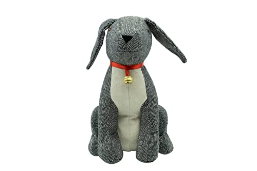Ferma Porta da Pavimento, Simpatici Fermaporta Animali da Pavimento in Stoffa Resistente con Imbottitura Pesante (Cagnolino Grigio con Campanello)