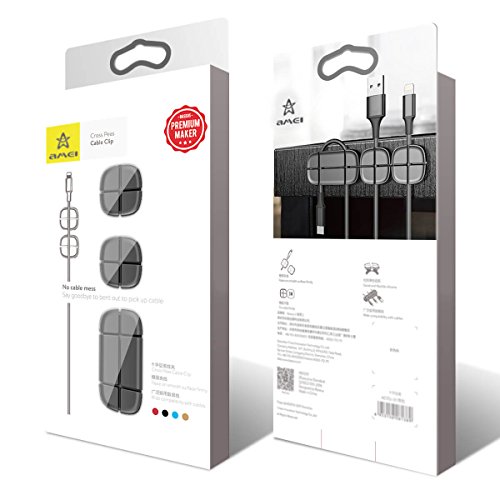 Amei Fermacavo Autoadesivo, Soluzioni Gestione Cavi da Scrivania Cavo Organizzatore per Apple Lightning, cavo di ricarica USB eco-friently silicone (nero)