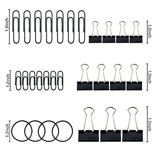 Fermafogli a Clip, 240 pezzi Graffette Ufficio e Cancelleria Scuola, Fermacarte Clip, Elastici, Clip Metallo di Dimensioni Assortite per Ufficio Scuola Forniture (Nero)