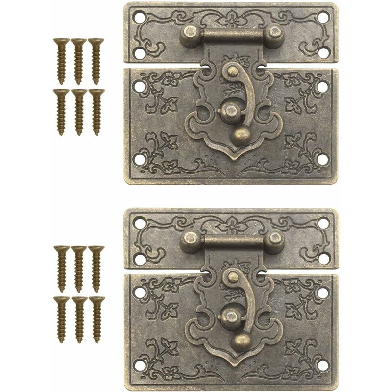 Per cassapanche, casse, armadi in bronzo antico design Perfetto per restaurare antiche casse, mobili o per ristrutturare vecchi casali, mobili di casali, castelli Per mobili antichi . Perfetto per il restauro di antiche cassapanche, mobili o per la ristrutturazione di antichi casali di campagna, mobili colonici, design di castelli. < p>Dimensioni totali: 67 x 58 mm. Parte superiore: 67 mm x 20 mm. Inferiore: 67 mm x 28 mm.8 fori, 2 mm di diametro. Contenuto della confezione: 2 fermagli (2 pezzi ciascuno) e 6 viti per legno abbinate.