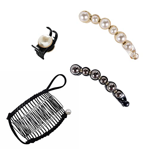 Contenuto della confezione: riceverai 2 fermagli per capelli a banana ambrata, con due stili di perline bianche e perline nere;