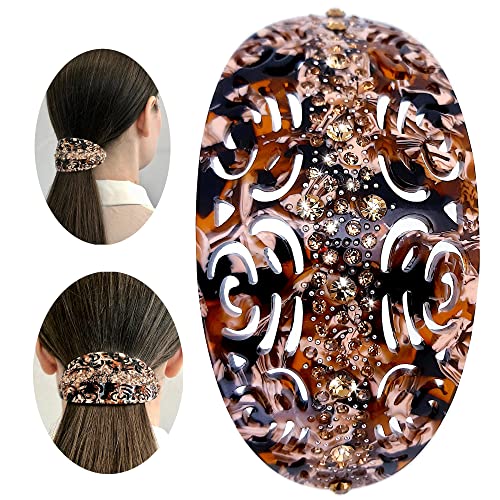 Fermagli Capelli Donna Marrone Eleganti 12 cm/Mollette per Capelli Donna Vintage Strass/Pinze per Capelli Donna Grandi/Mollettone Capelli Elegante Ovale/Accessori Capelli Firmati