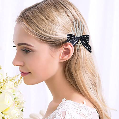 【Set di fermagli per capelli di Halloween】 Include 1 paio di fermagli per capelli con scheletro con fiocco, 4 fermagli per capelli con scheletro di strass, che possono soddisfare la tua festa quotidiana o le tue uscite